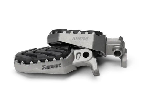 Αναβάθμισε τον έλεγχο και την άνεση της μοτοσυκλέτας σου με τα Akrapovic Titanium Footpegs, σχεδιασμένα για αναβάτες που απαιτούν κορυφαία απόδοση σε on-road και off-road διαδρομές. Τα μονοκόμματα μαρσπιέ κατασκευάζονται από τιτάνιο Grade 5, προσφέροντας εξαιρετική μηχανική αντοχή, χαμηλό βάρος και σταθερότητα ακόμη και στις πιο απαιτητικές συνθήκες.