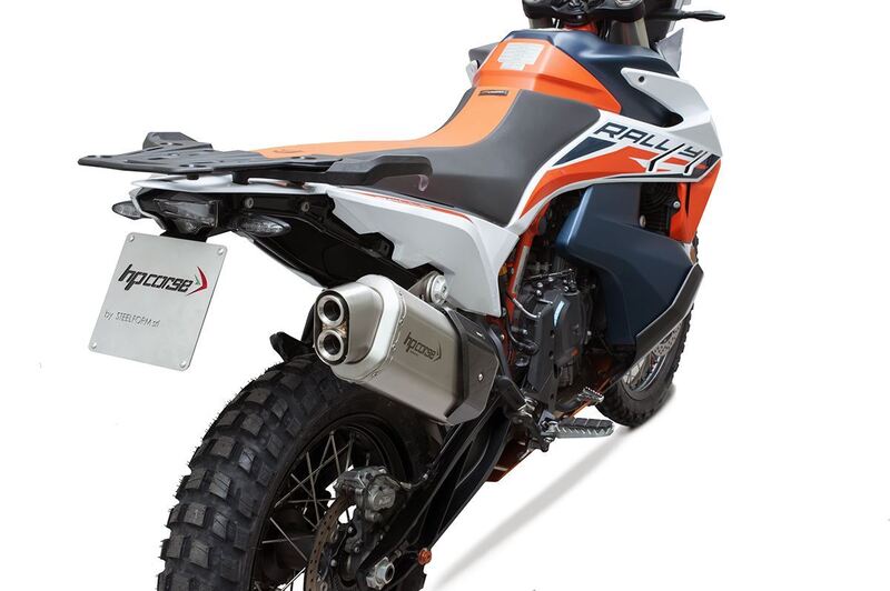 Αναβαθμίστε το στυλ και την ισχύ του 890 ADV σας με το νόμιμο σιγαστήρα Euro 5 της HP Corse. Σχεδιασμένο στο Κέντρο Ε & Α της Μπολόνια, το 4-TRACK R SHORT (μήκος 300 χλστ.) διαθέτει υδροσχηματισμένο στόμιο χωρίς συγκόλληση και εξογκώματα δύο db. Διατίθεται σε τρεις παραλλαγές: τιτάνιο, κεραμικό μαύρο και ανοξείδωτο ατσάλι, το 4-TRACK R SHORT εξασφαλίζει αξιοπιστία στα πιο απαιτητικά μονοπάτια. Κάντε κάθε μέρα και περιπέτεια νιώθοντας τη δύναμη, ιδίως σε χαμηλές και μεσαίες αγωγές. απολαύστε τα μάτια σας με τη φινέτσα των απλών σιλουετών, του οκταγωνικού αμαξώματος και των λεπτομερειών από ανθρακονήματα. Σπρώξτε τα όρια του συνηθισμένου και προχωρήστε παρακάτω. Εγκεκριμένος τύπος EC/ECE, συμβατός με Euro 5.