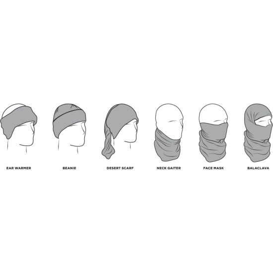 Φοριέται ως μπαντάνα, φουλάρι, μαντήλι, κουκούλα, κεφαλόδεσμος, περικάρπιο, σκούφο .